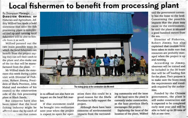 集团要闻瓦努阿图《每日邮报》:当地渔民将受益于水产品加工厂