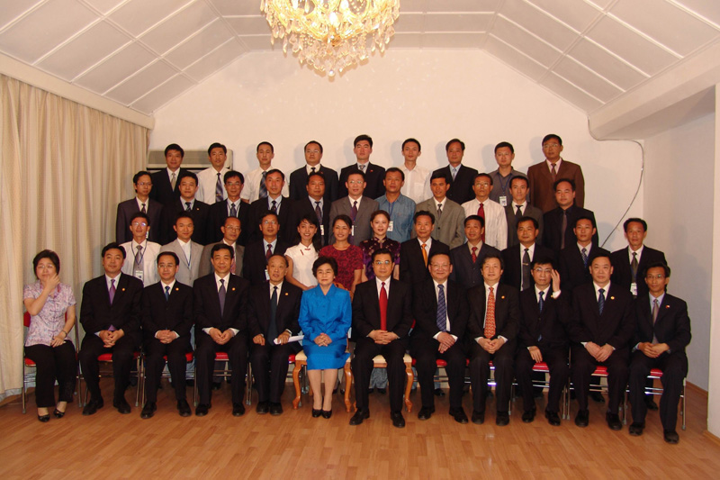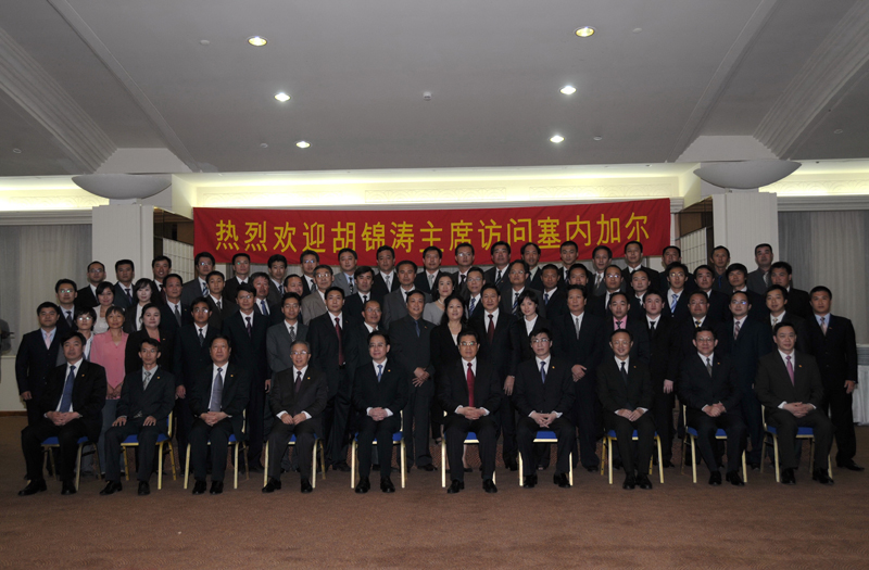 讲话结束后,胡主席又分别与我们握手告别,在与我第六次握手时,我鼓起勇气,说:“胡主席,我是江苏省建集团的,我们是第二次见面。”我一看胡主席有些惊讶,连忙解释说,我曾在利比里亚受到胡主席您的接见,并和您合影了。胡主席亲切地问我在利比里亚做什么工作,我回答是在利比里亚做外交部大楼装修项目的。胡主席说:“利比里亚总统府当时被火烧了,总统到其他地方办公的”。胡主席又关心地问:“你现在在塞内加尔干什么?”我说:“我是受商务部委托,在做体育场维修项目,现已经完成任务了。商务部和塞方已经验收,质量很好”。胡主席高兴地笑了,问道:“修一个体育场需要多长时间?”我说:“三个体育场的维修需要一年时间。”胡主席非常满意的微笑点头,说:“你们辛苦了”。随后胡主席与其他代表握手话别。