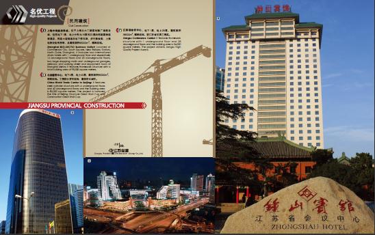 新版《江苏省建集团》画册内容翔实,设计新颖,装帧考究,印刷精美,共由280多幅精美图片与8000多精练文字编排而成。封面由著名书法家沈鹏先生题写。大气、新颖、实用的内页象征着集团创百年省建的生命力和朝气蓬勃的气息,较好地传达了江苏省建集团的品牌形象。画册涵盖了企业风采、名优工程、投资开发、科研技术、管理创新、文化长廊等六大板块,照片资料全部采用最新图文数据,系统、准确、全面地介绍了江苏省建集团五十余年的发展历程和取得的辉煌成就。无论是内文资料、装帧质量和设计水准,新版画册都比以往有了较大提高。
