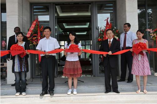 ■钟山副部长(左二)、吴泽献大使(右二)为新馆剪彩
