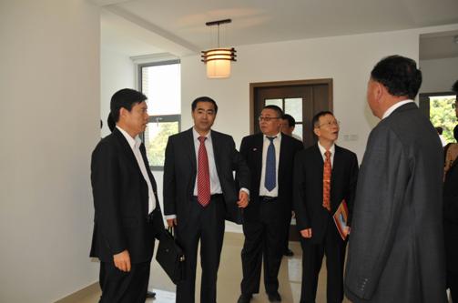 仪式结束后,钟山副部长亲切接见了江苏省建集团副总裁兼海外公司总经理张三旗,听取了项目组关于项目施工情况的汇报。随后,钟山在吴泽献、魏胜梓、张三旗和项目组主要负责人的陪同下,参观了新落成的馆舍。