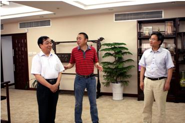 ■陈正华董事长陪同成际贵副局长(左)参观集团总部
