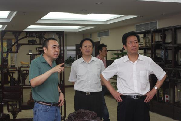 ■陈正华董事长(左)陪同陈绍泽副书记(右)参观集团总部