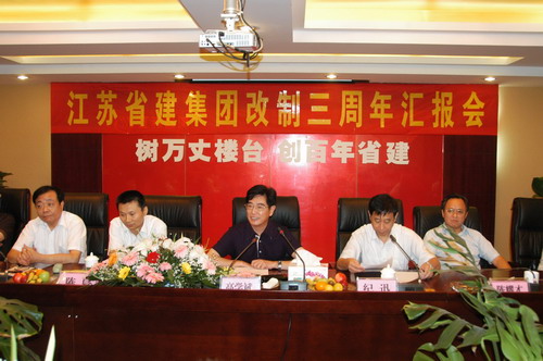 陈正华还汇报了集团今后三年的工作思路。他说,到2011年底,江苏省建要奋力实现四个目标:一是规模产值确保过百亿;二是完成企业的上市工作;三是基本达到特级资质的标准;四是全面完成江苏省建总部大厦的建设。陈正华指出,要完成上述四项工作,我们将围绕“改革与创新”、“调整和整合”这两个重点,使集团公司的产业格局形成国内建筑、海外项目和投资开发三大板块,真正使江苏省建集团成为内容丰富、特色明显、实力强劲的业内“航空母舰”。陈正华还向局领导介绍了集团今年上半年的工作情况及下半年的工作举措。